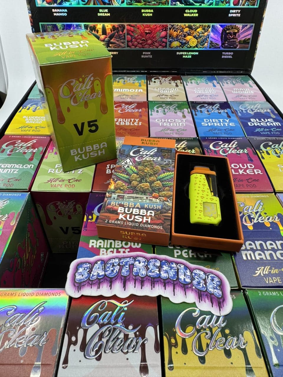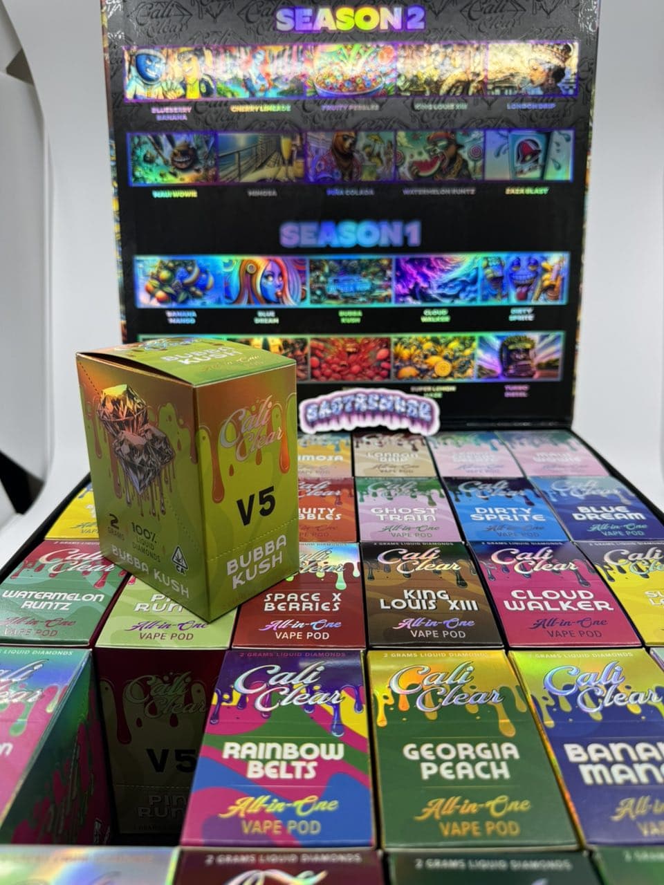 | Flavors | Cherry Limeade, Mimosa, London Gas, Maui Wowie, Pima Colada, Fruity Pebbles, Ghost Train, Dirty Sprite, Blue Dream, Watermelon Runtz, Space Berries, King Louis Xlll, Cloud Walker, Super Lemon Naze, Watermelon Lime Agua Fresca, Bubba Kush, Rainbow Belts, Georgia Peach, Banana Mango, Tusi, Jungle Juice, Mango Mochi, Cherry Vanilla Coke, Turbo Diesel, Forbidden Fruit, Rocket Pop |