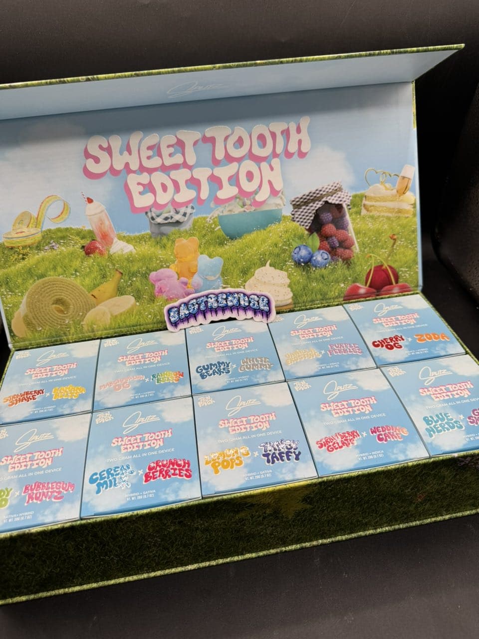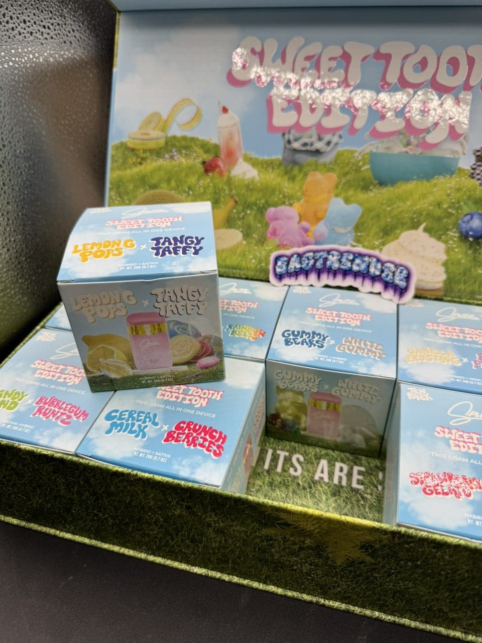 | FLAVORS | STRAWBERRY SHAKE X BANANA BELTS, CANDY LAND X BUBBLEGUM RUNTZ, MARSHMALLOW OG X RAINBOW BELTS, CEREAL MILK X CRUNCH BERRIES, GUMMY BEARS X WHITE GUMMY, LEMON G POPS X TANGY TAFFY, VANILLA FROSTING X PURPLE PEBBLES, STRAWBERRY GELATO X WEDDING CAKE, CHERRY OG X ZODA, BLUE NERDS X GRAPE SKITTLES, 10PK (MIXED FLAVORS), 25PK (MIXED FLAVORS), 50PK (MIXED FLAVORS), 100PK (MIXED FLAVORS) |
