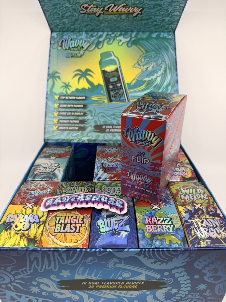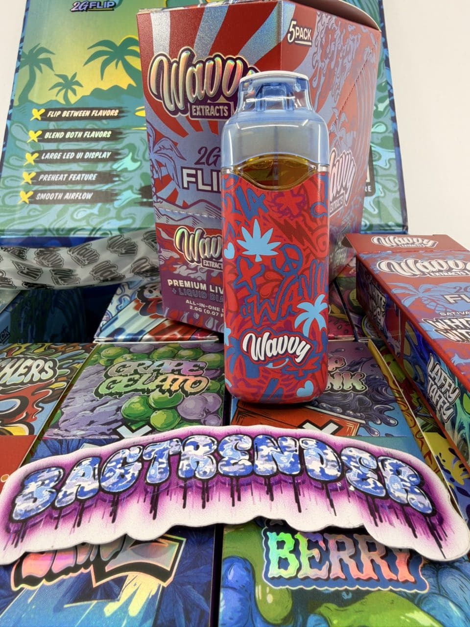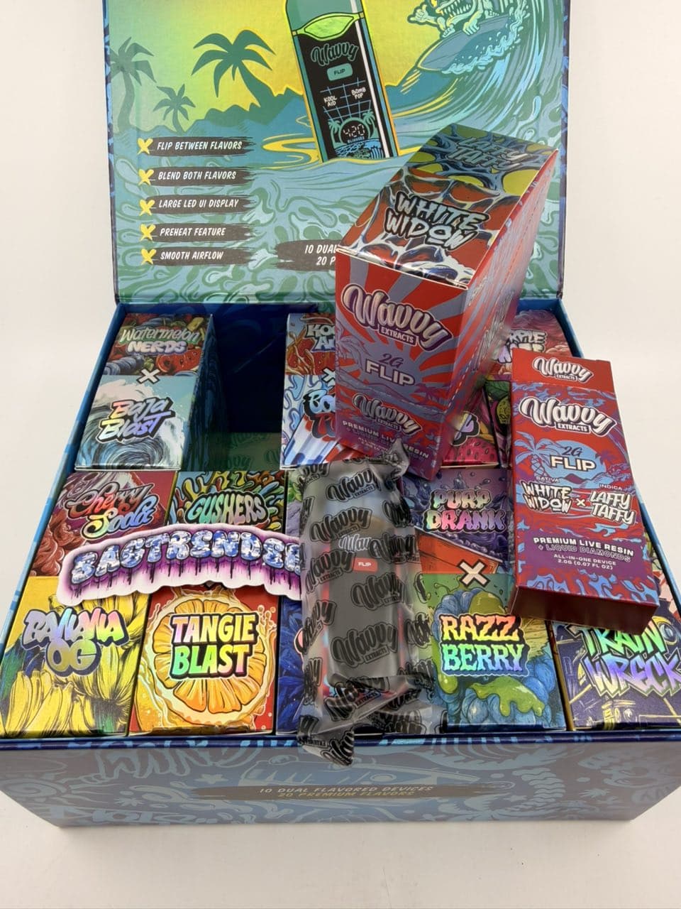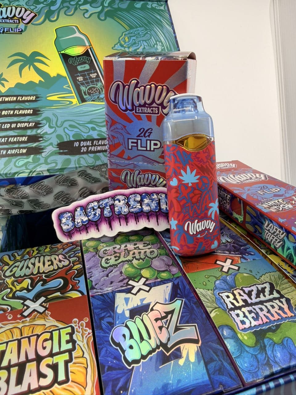 | Flavors | Cherry Soda X Banana OG, Laffy Taffy X White Widow, Grape Gelato X Blues, Purp Drank X Razz Berry, Wild Melon X Train Wreck, Purple Haze X Guava Candy, Gushers X Tangie Blast, Watermelon Nerds X Baja Blast, Kool Aid |